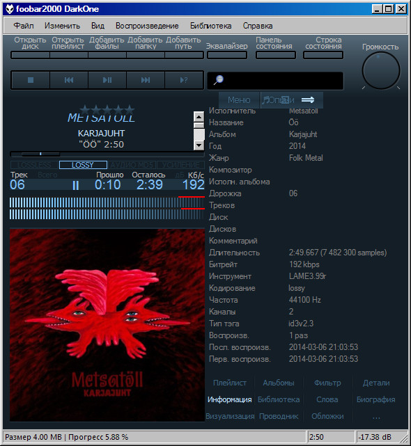 аудиоплеер foobar2000. ОС: Windows ХР/7/8