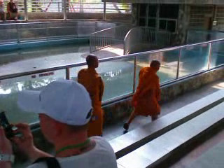 Тайланд.Подготовка к шоу с крокодилами. Снято лично на сотовый телефон.Прошли буддийские монахи.