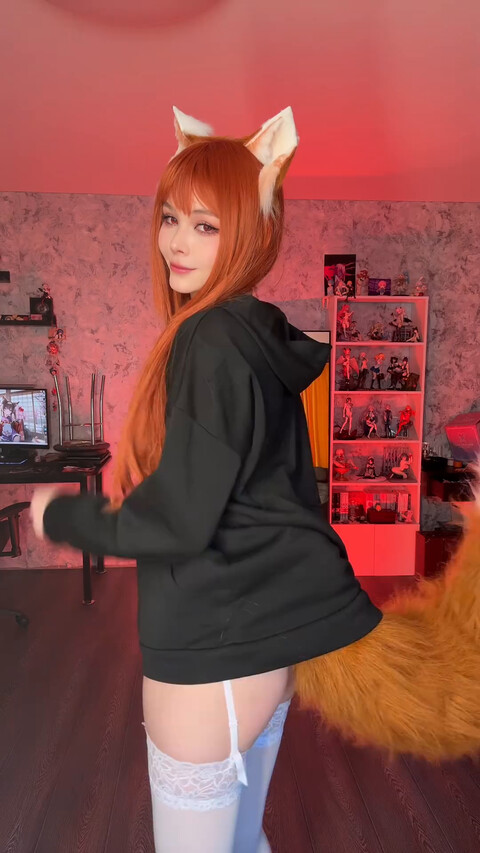 Косплей лисички в белых чулках.