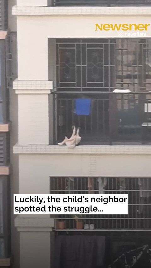 Heroic Neighbour Climbs Building to Rescue Toddler - Hanging from 7th-floor balcony!.mp4