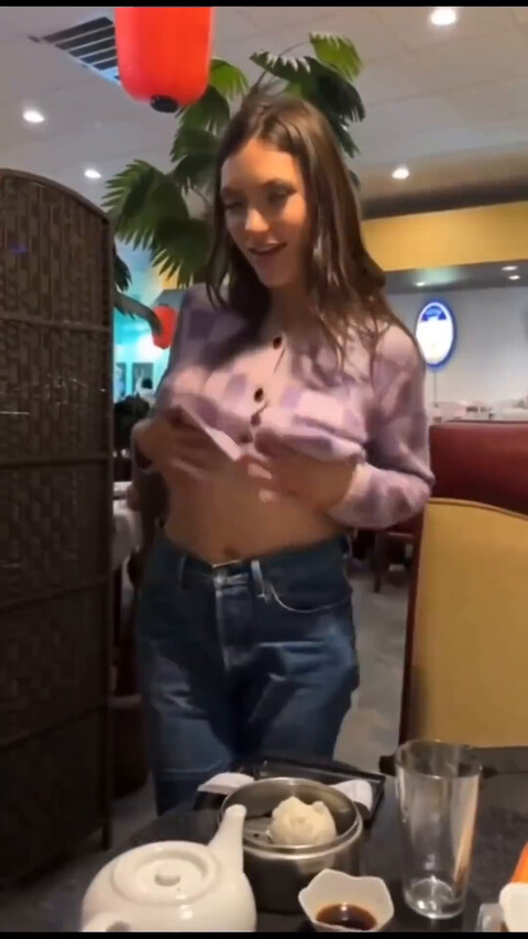 Шлюха официантка Алиса Корж подняла юбку и показала красивые ножки и трусики