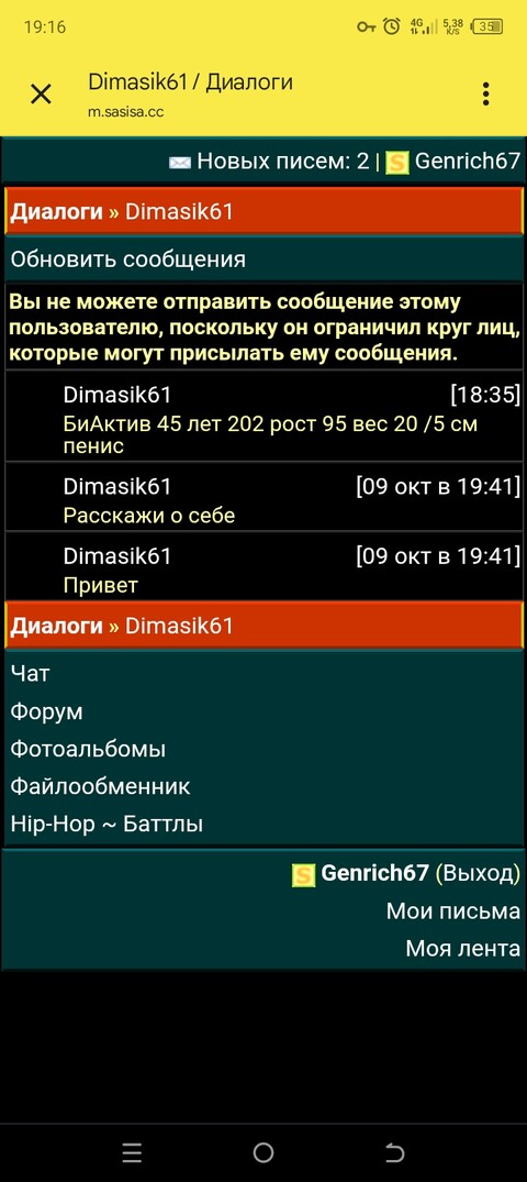 Dimasik61, сними блокировку сообщений.