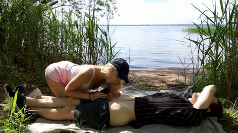 молодку у озера природа красивая.mp4