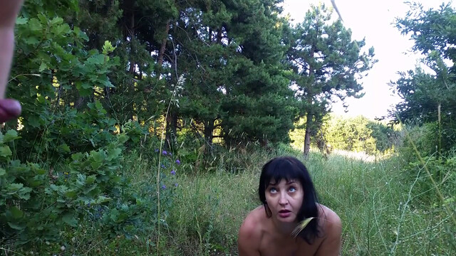 - Зрелая шалава делает минет в лесу.mp4