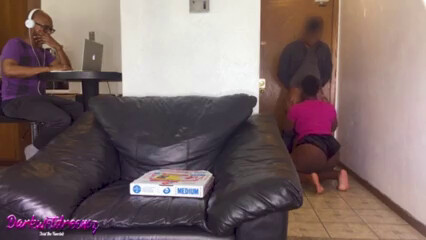 Пока муж сидит за компом жена изменяет с курьером.mp4